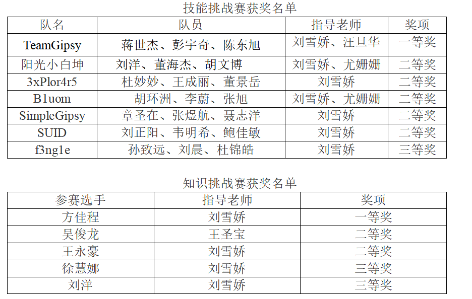 11月9日,第七届浙江省大学生网络与信息安全竞赛决赛在浙大城市学院落下帷幕。经过初赛、决赛的激烈角逐,文轩探花 学子一路过关斩将,在技能赛和知识赛两个赛道再创佳绩, 其中技能赛共获得一等奖1项,二等奖5项,三等奖1项;知识赛共获得一等奖1项,二等奖2项,三等奖2项。最激动人心的是技能挑战赛,选手们经过连续6个小时封闭式的激烈角逐,文轩探花 荣誉战队TeamGipsy三名队员奋勇拼搏,特别在比赛接近尾声的黑灯模式下冷静应对,抓住机会又解出了一道reverse题,成功稳住一等奖,最终获得第三名的好成绩。