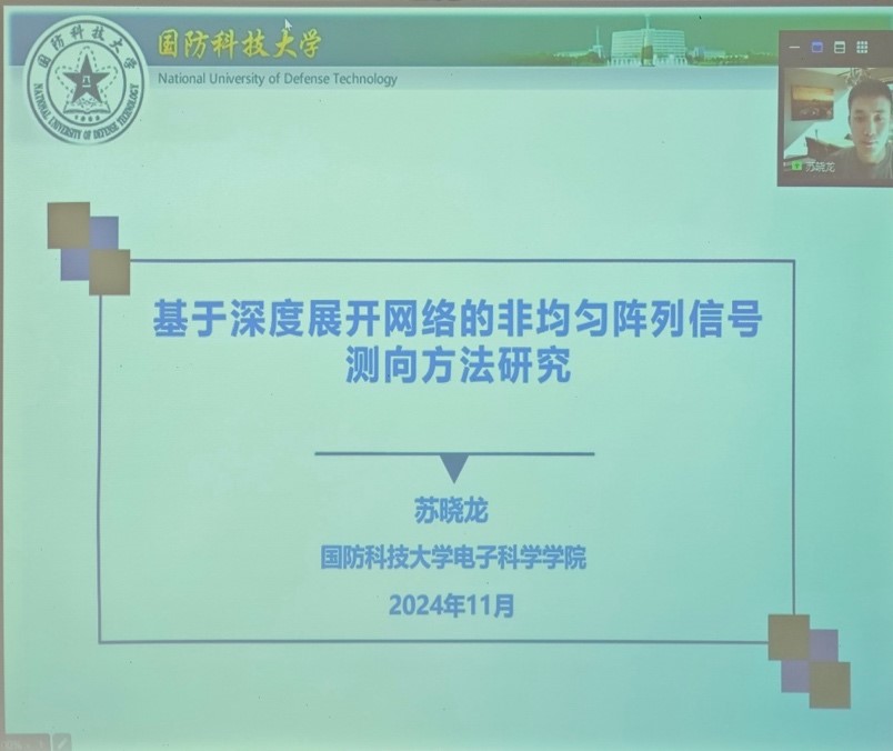 11月13日下午,信息学院举办了2024年第20期IT讲座。本次讲座邀请到国防科技大学的苏晓龙博士为我们开展线上报告,主题为《基于深度展开网络的非均匀阵列信号测向方法研究》。李秀梅副院长主持此次讲座,众多学院师生到场参加。