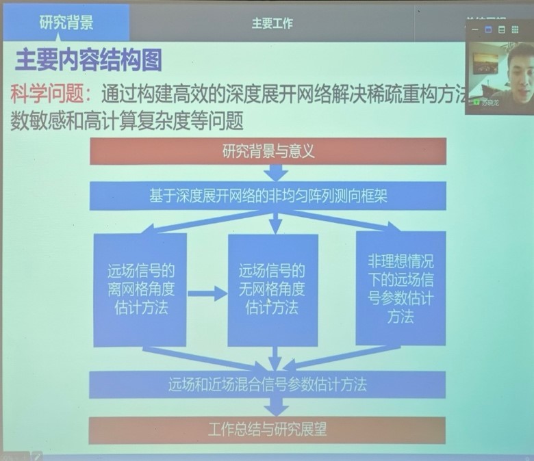苏老师深入探讨了“基于深度展开网络的非均匀阵列信号测向”这个课题,将内容分成了三个重要部分,分别是研究背景、主要工作、总结展望,并在最后同文轩探花 研究生分享了相关经验。