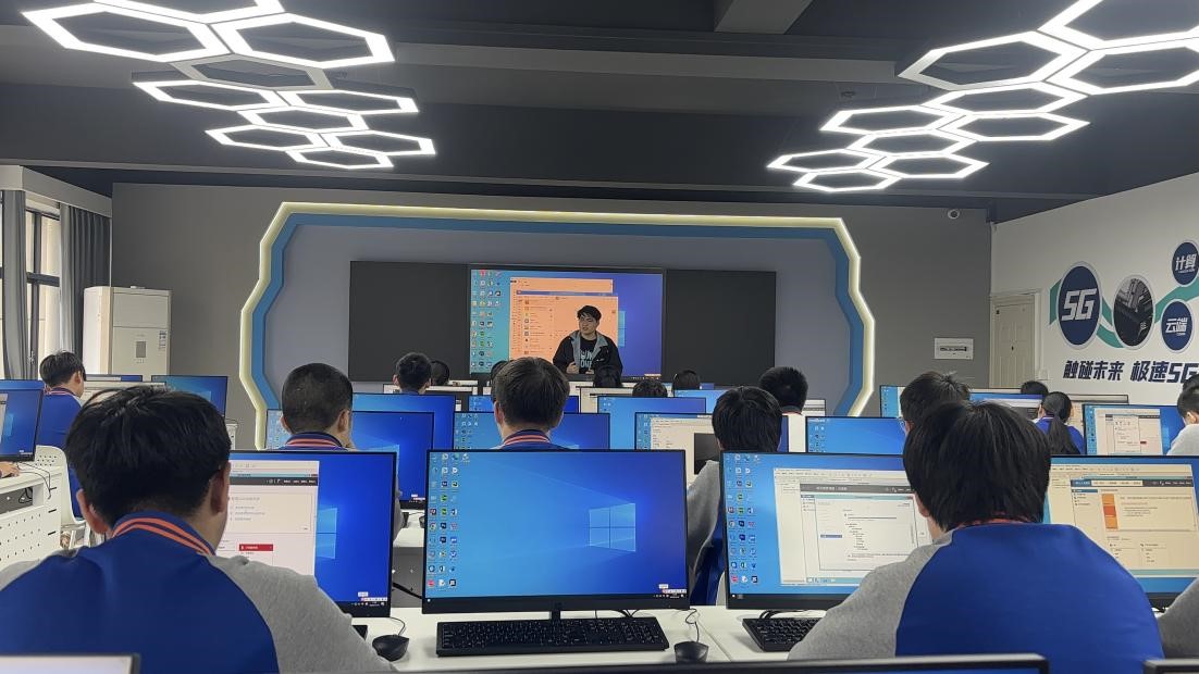11月14日,学院2021级计算机科学与技术(师范)专业在中策职业学校的实习生进行了公开课展示,金科谷同学讲授了高二年级课程《web服务器》,阿丽耶同学教授高一年级学生《海报上的竞技---图文混排》。学院党委副书记余洁带队四名学院教师一同前来进行观摩和指导。