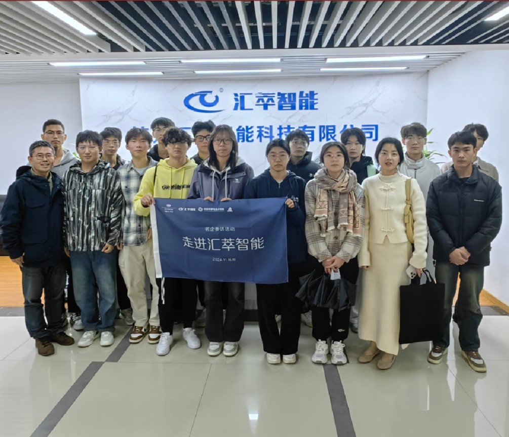 随后,师生们在公司代表的引导下参观了公司的展馆,观看了公司的各类智能产品。值得一提的是,展馆中有一面“专利墙”展示公司所获100多项发明专利证书。公司代表介绍,汇萃智能科技有限公司作为一家高新技术企业,是一家实打实的“实干企业”。公司的实干和创新文化深深感染了在场的同学。这样的企业环境是同学们对就业规划与未来的就业环境有了更充足的信心。