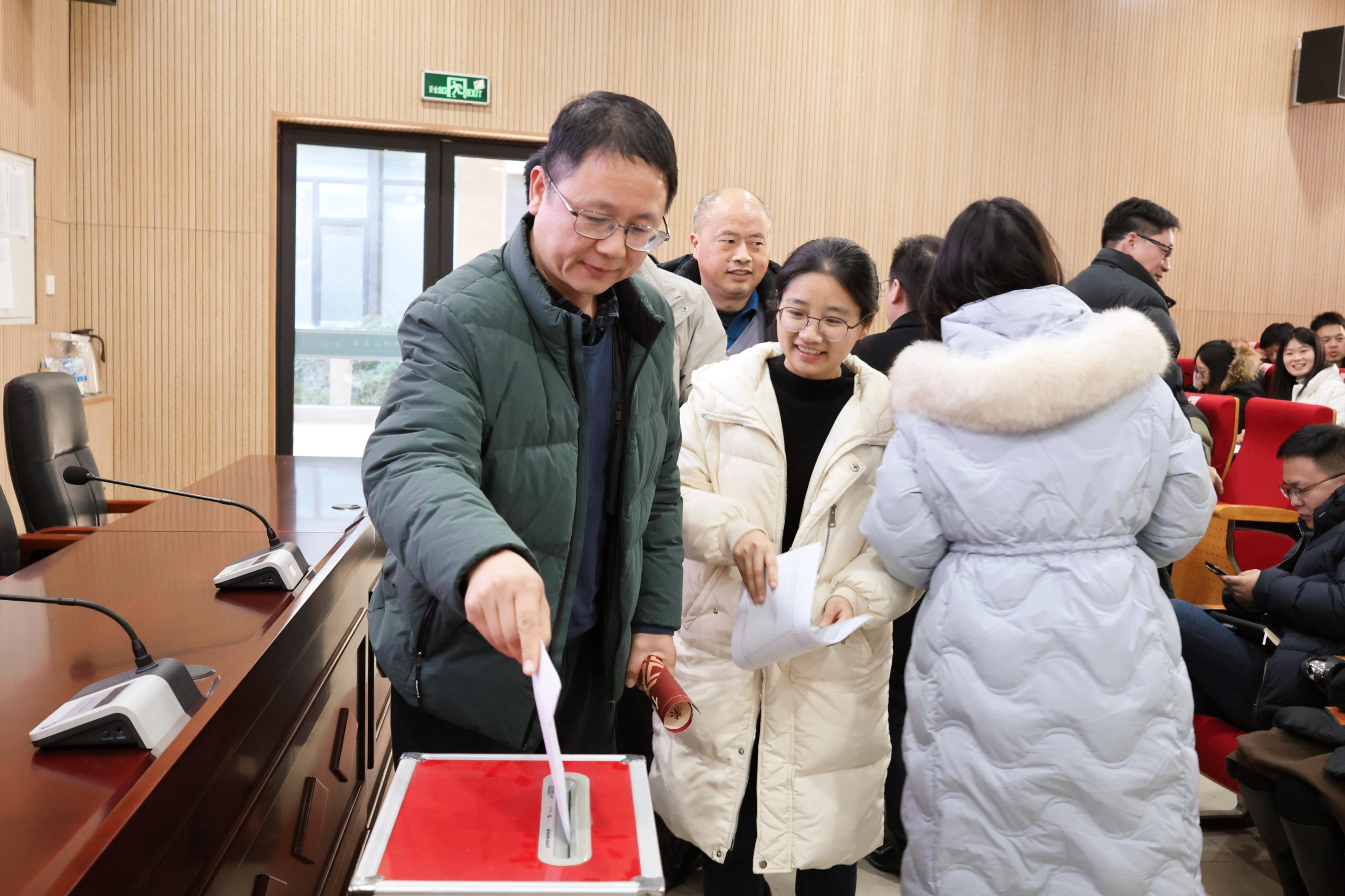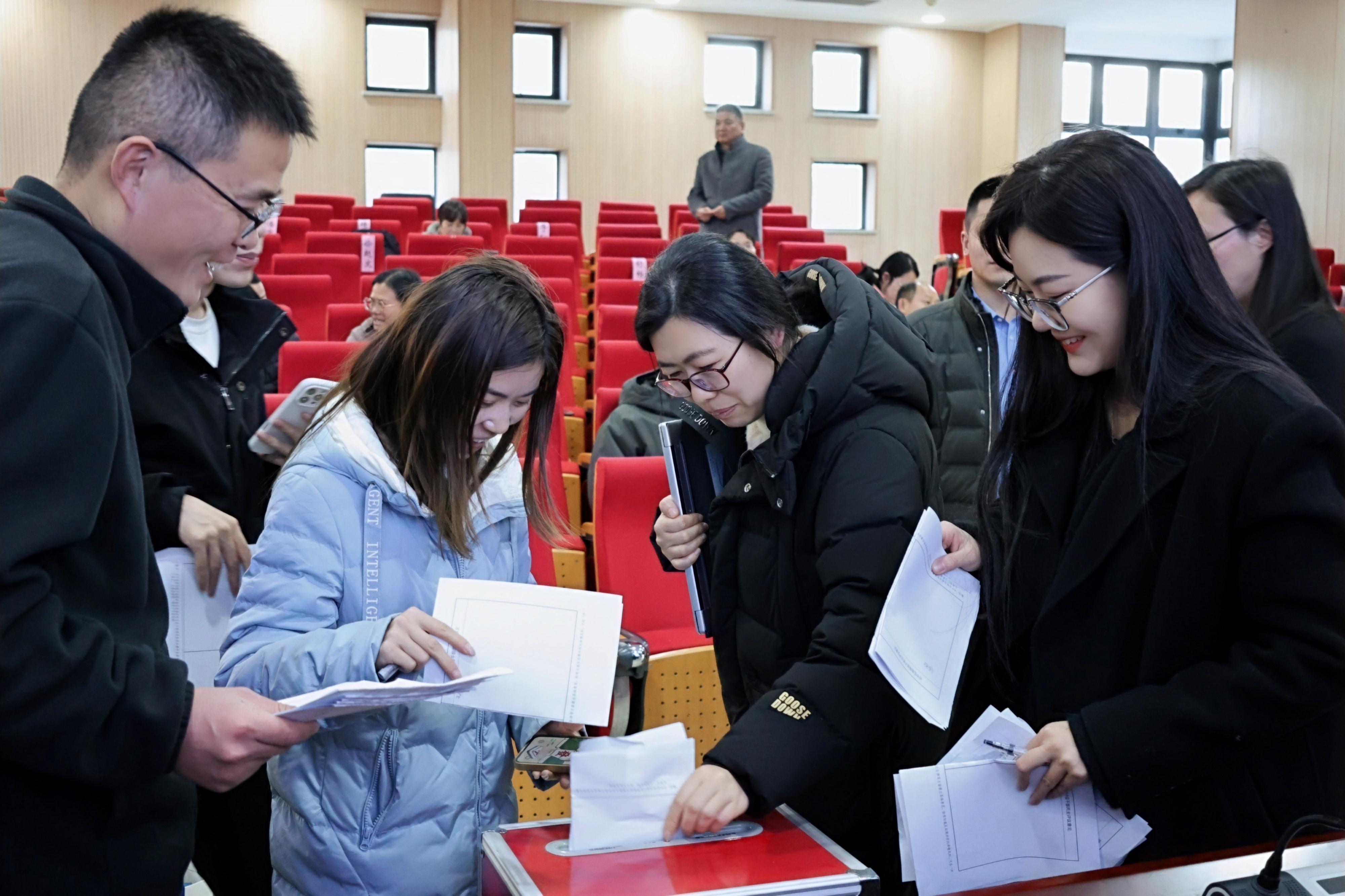 学院主要领导进行个人述职,副职院领导书面述职。随后开展领导班子和中层干部年度考核民主测评,全体教职工在认真听取班子和领导的履职汇报后,认真评价投出手中宝贵的一票。