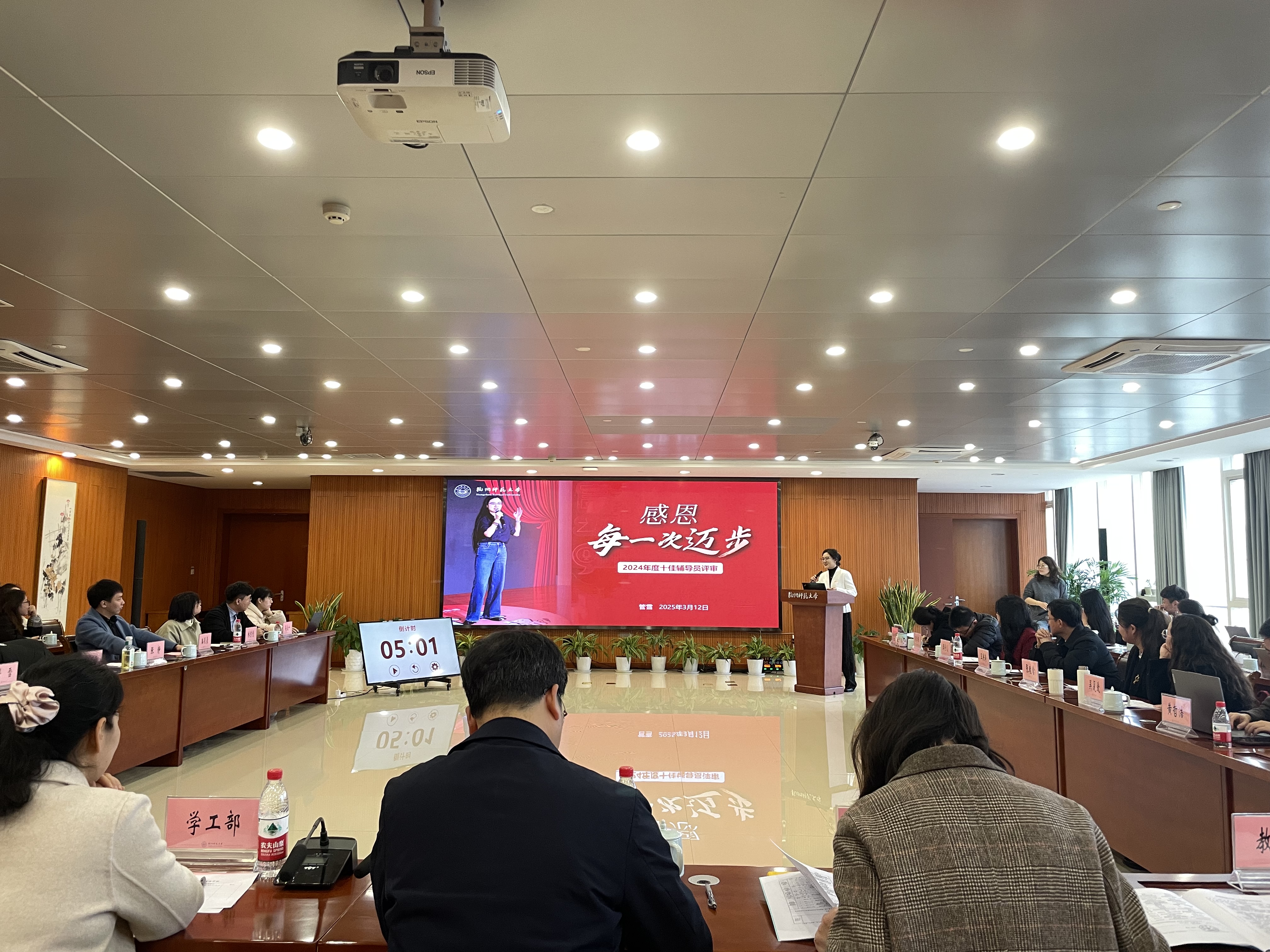 春风化雨润桃李,立德树人谱新篇。为深入学习贯彻习近平新时代中国特色社会主义思想和党的二十大精神,落实立德树人根本任务,充分发挥优秀辅导员的引领示范和辐射带动作用,3月12日下午,学校举行2024年度十佳辅导员评选答辩会,校党委副书记应飚、校思政工作领导小组相关负责人出席会议。