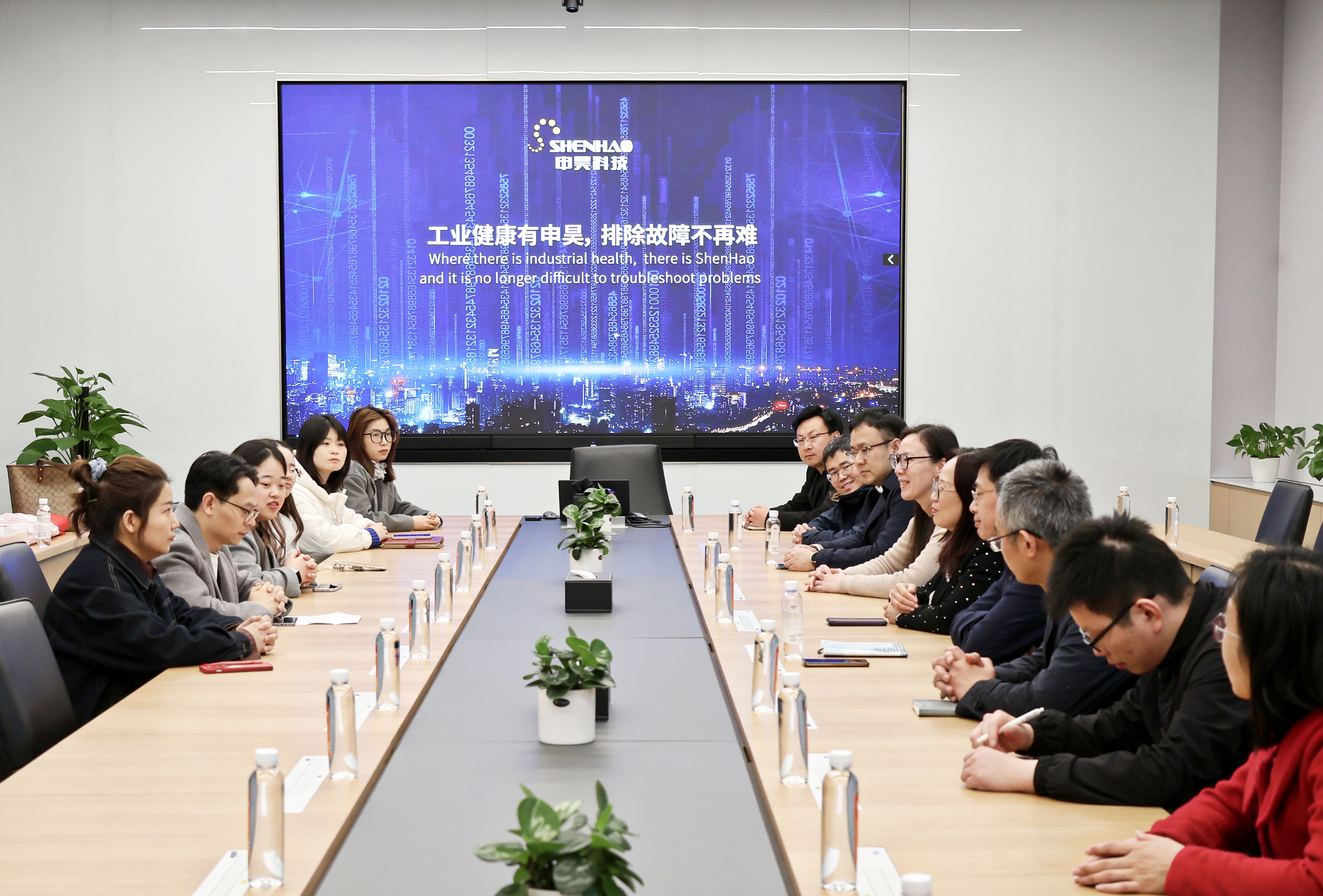 紧接着,一行来到了杭州申昊科技,申昊科技是电力巡检机器人行业的“隐形冠军”,其产品覆盖全国80%以上的特高压电网。在申昊科技智慧运维中心,学院一行观摩了多种机器人,例如电网传导除冰机器人、海下探测机器人,了解如何通过AI算法实现机器人对故障的精准识别。