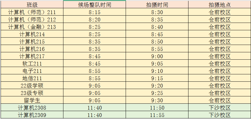 为给大家留下美好的大学回忆,记录大学毕业的重要时刻,学院将于4月23日为2025届毕业生进行毕业照拍摄活动。由于候场整队需要时间,请各班严格按照指定时间进行拍摄。