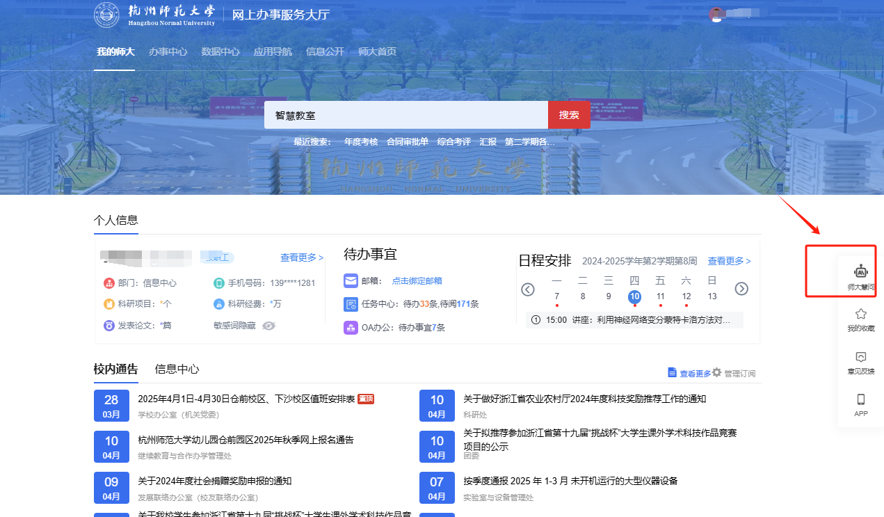 为加快人工智能在高等教育领域的创新应用,方便师生教学科研,近日,校教务处和信息化中心开通“慧问教学”平台试用服务。该平台由学院胡保坤实验室本硕团队自主研发完成。