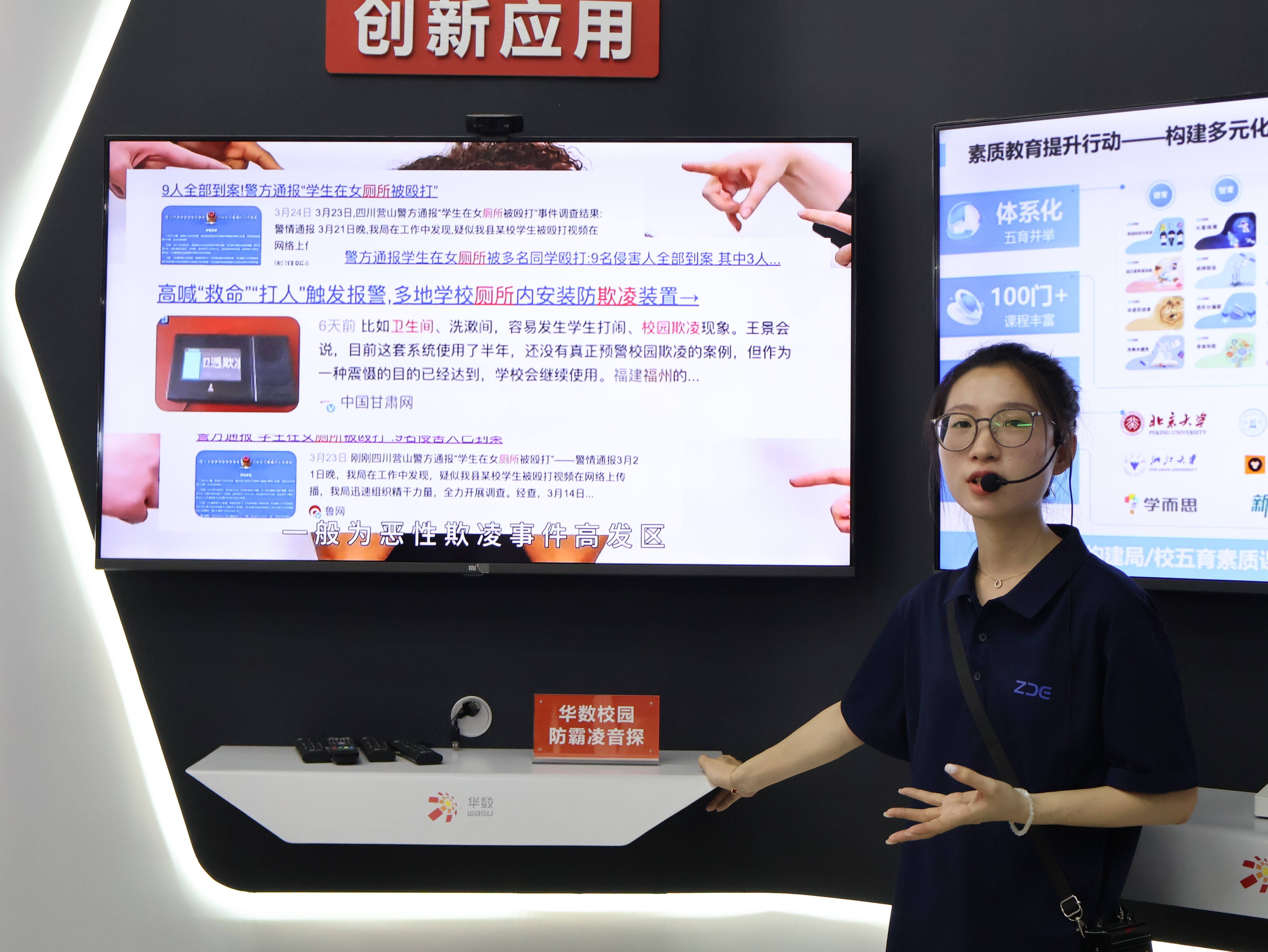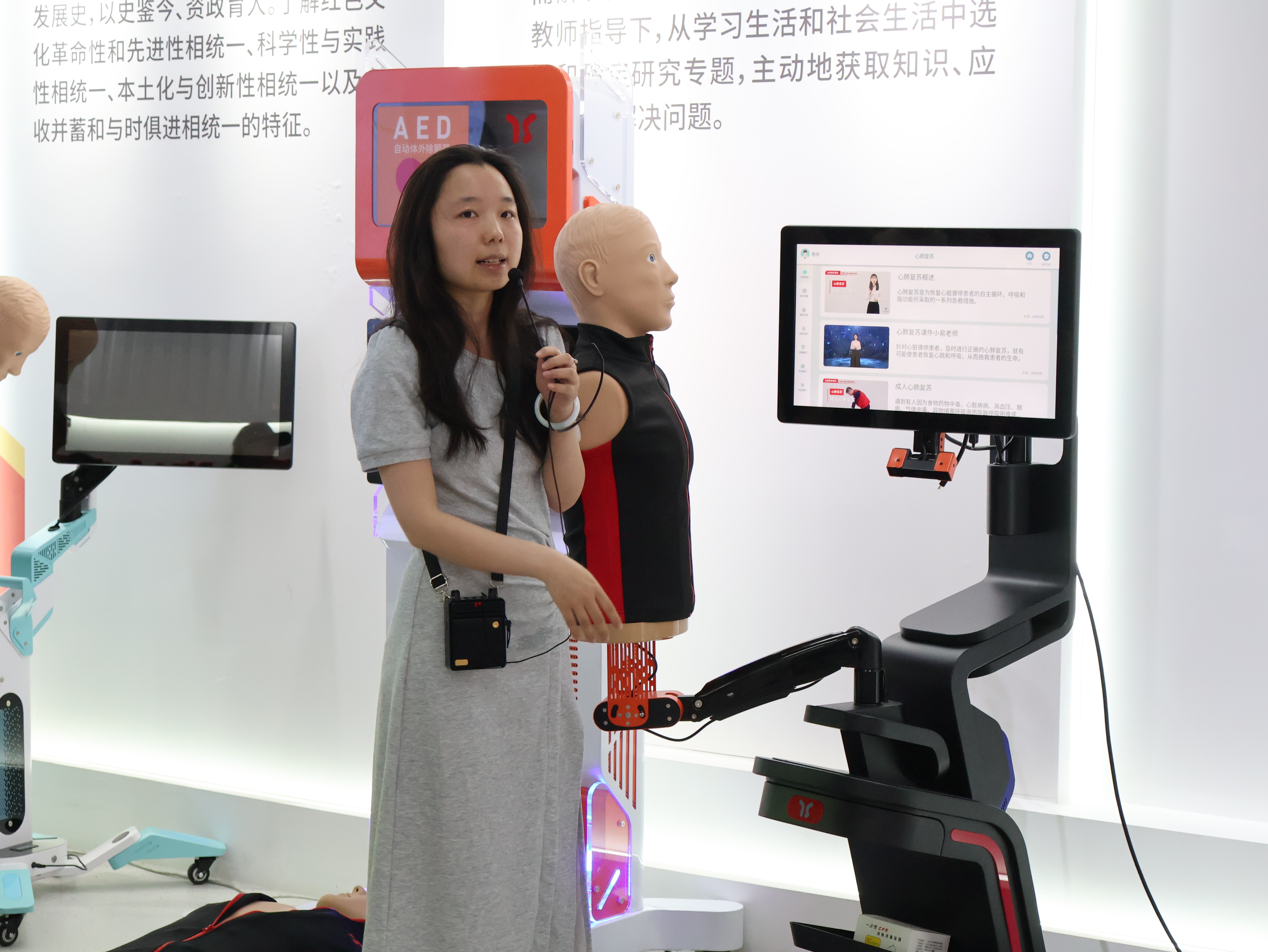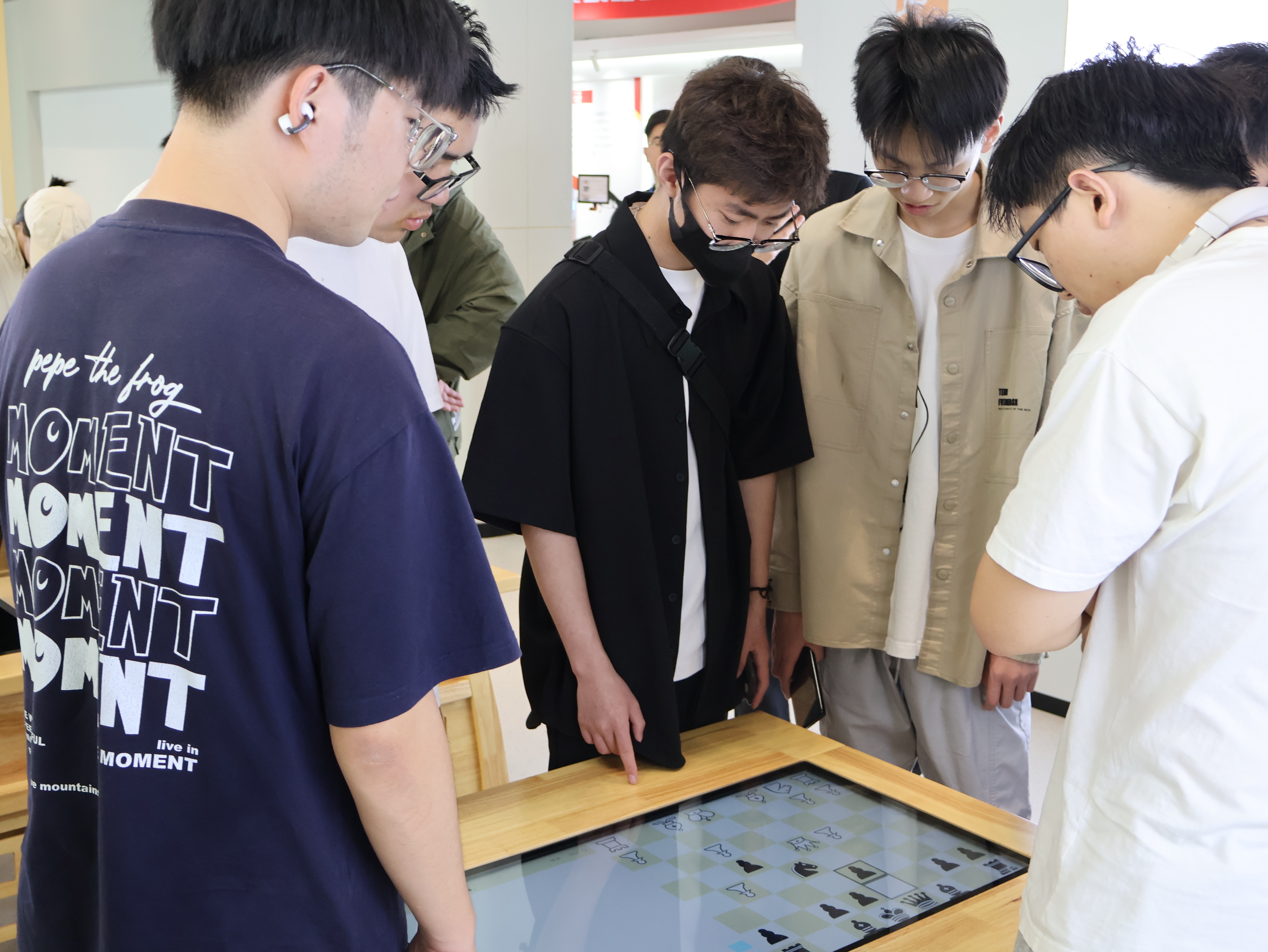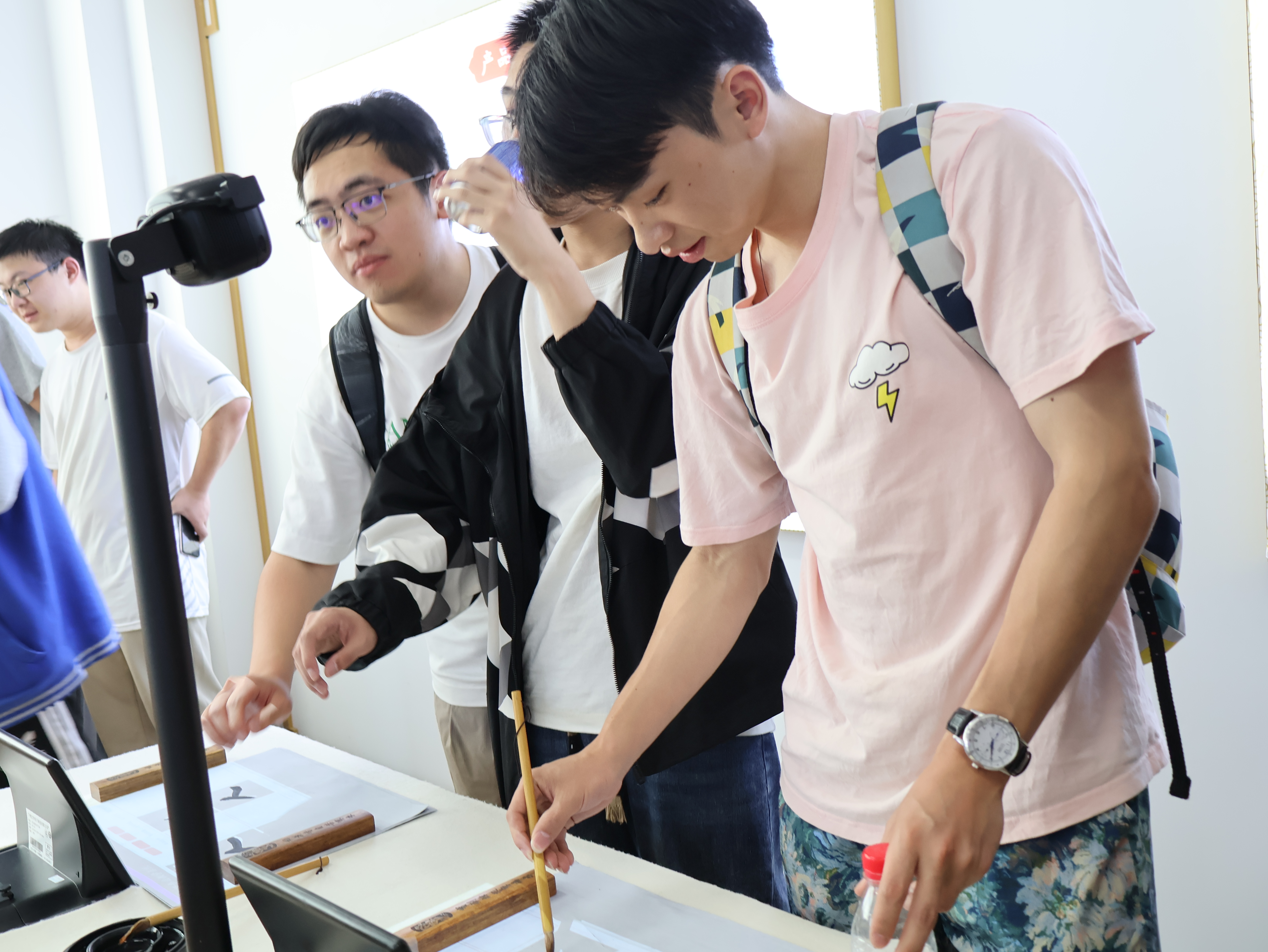 接着,她带领着在场同学们进行观摩,边介绍边鼓励同学们上前操作,亲身去感受人工智能。在这里,他们运用“智能+”模式,将许多教学项目与人工智能和实践相融合,将智能技术深度嵌入核心素质培养的教学实践中:从与AI大战国际象棋、用“文兴小书家”进行画面修改、书法教学,到沙画教学、急救知识教育等等,大家跟随着引导,体验了许多“智教合一”的项目。在场同学无不感慨人工智能已经深入了教育行业,从前自己读书的时候都没有这些智能设备加持呢!