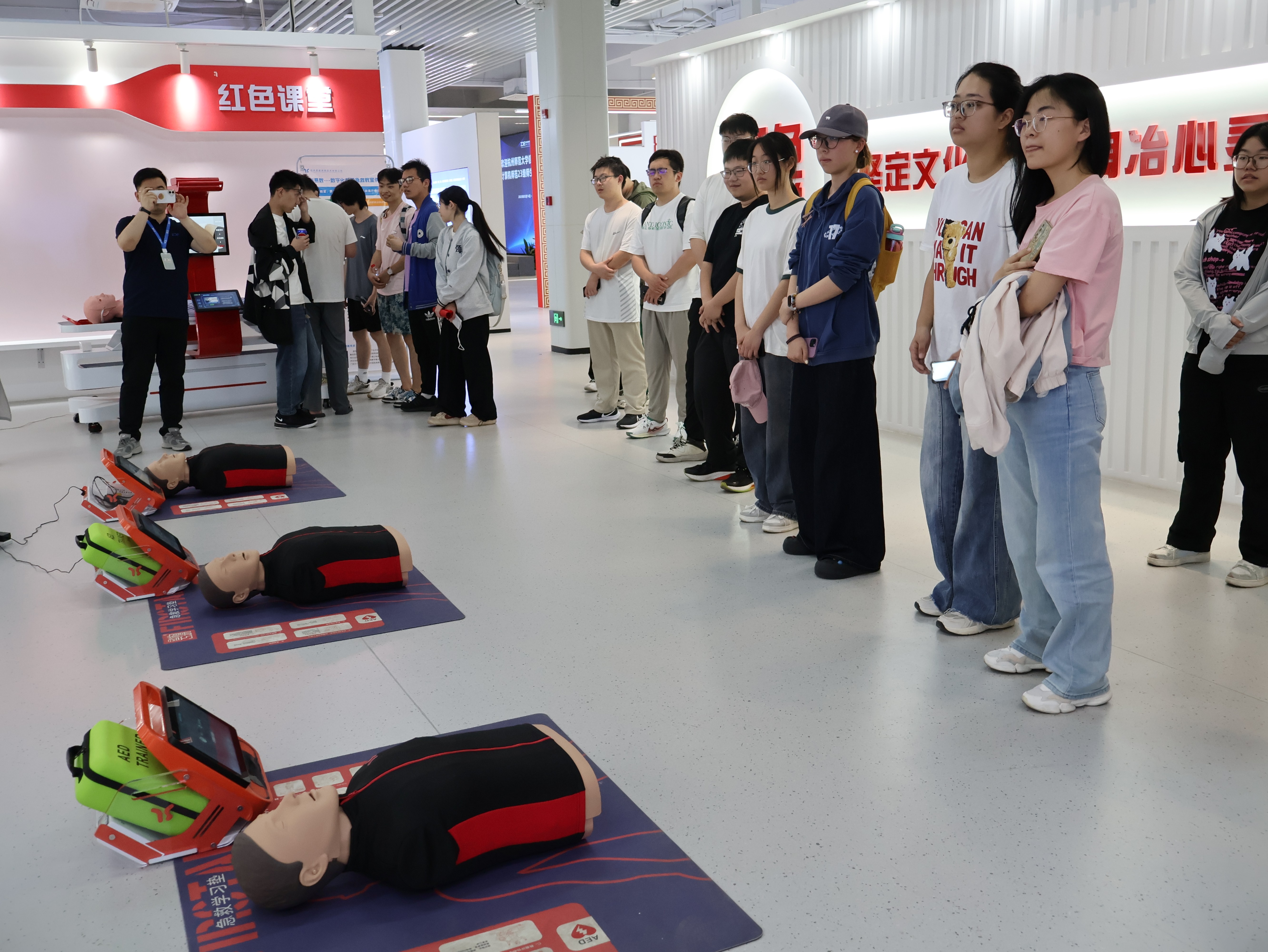 教育强国,科技兴国,随着新师范生培养政策的深入以及人工智能技术发展对教育生态产生深刻影响甚至重塑,师范生的培养也面临着诸多挑战与创新。为了拓展师范生视野,了解行业前景,5月14日下午,由师范班带班辅导员吴婧老师带队,计算机231、232两个师范班一同乘上了前往数字教育港的包车,积极体会并探寻信息技术与教育融合的创新路径,进行了一场身临其境的智能与教育交融并进的观摩体验会。