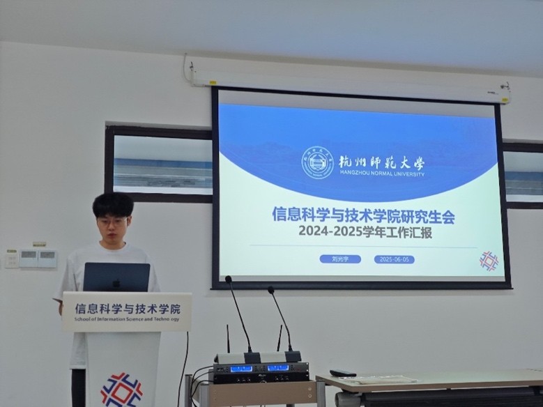 接着,第八届研究生会主席刘光宇向与会人员汇报过去一学年研究生会的工作成果。他详细介绍了本届研究生会的组织结构和运行机制,以及在学术交流、文体活动、权益服务、对外联络等方面卓有成效的工作。涵盖多场高水平学术讲坛和就业讲座,精心组织联谊活动、羽毛球赛等多类型的文体活动。建立舆情反馈机制推动解决同学们关切的实际问题,有效搭建起学院与学生沟通的桥梁。同时,他还对下一届研究生会提出了殷切期望,希望新一届队伍在往届的基础上,多倾听同学们的声音,发扬服务精神,在接下来的工作中不断创新、积极进取,为学院的发展贡献力量。