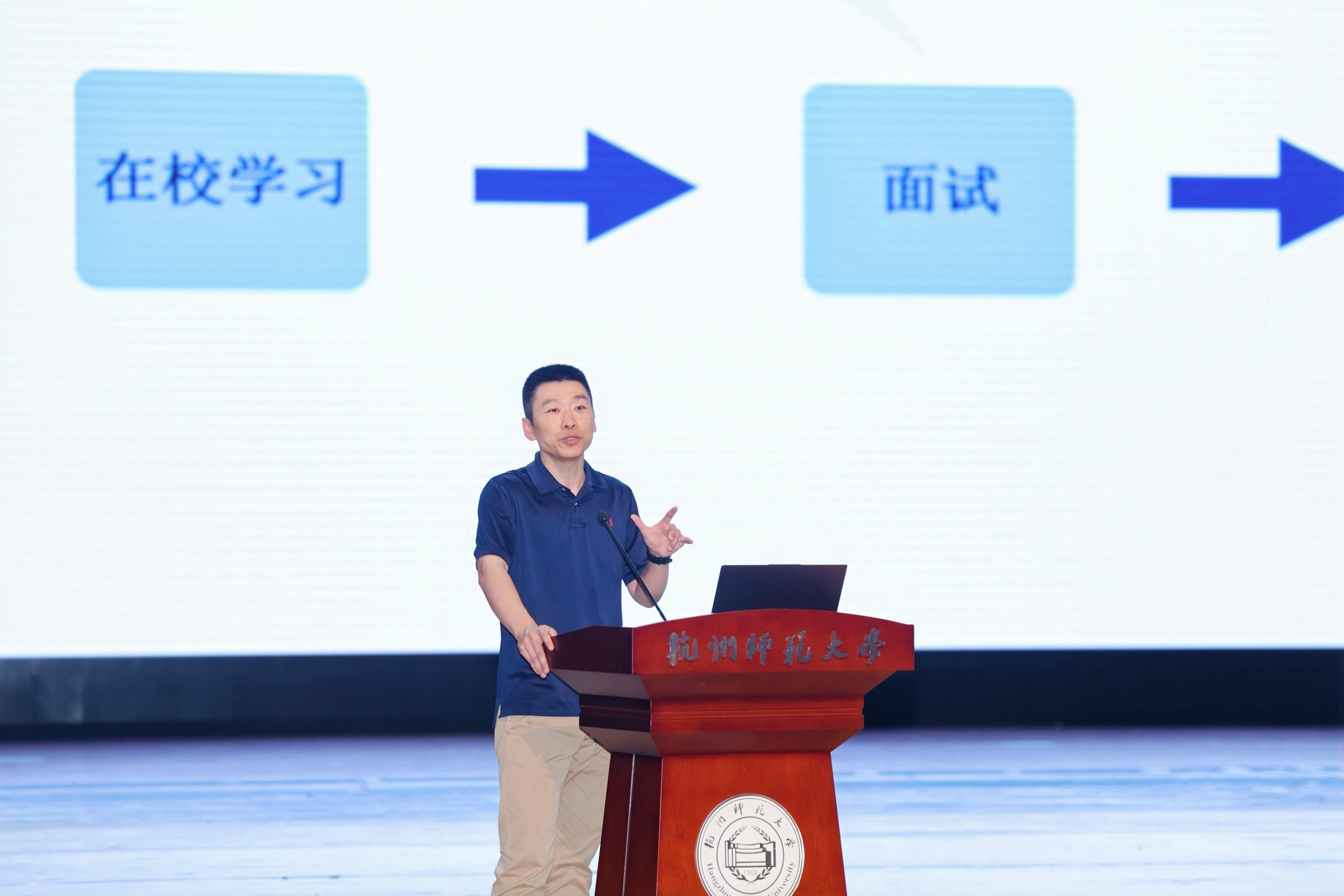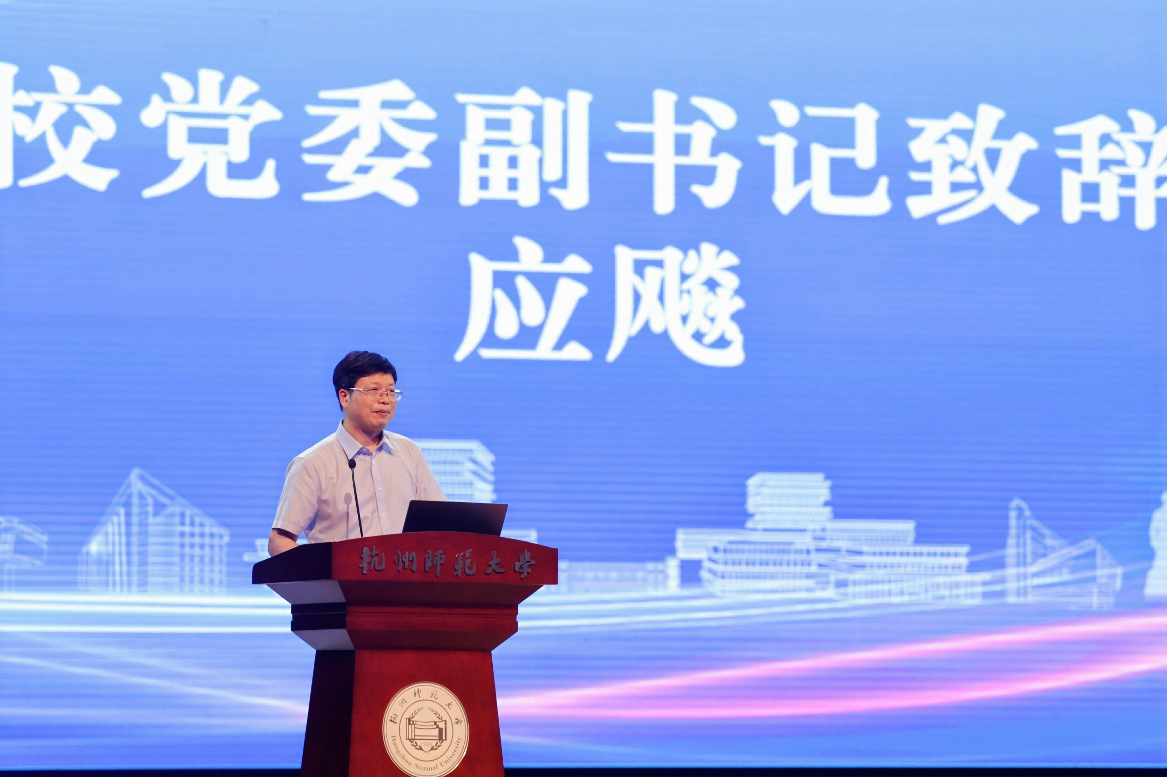 校党委副书记应飚在致辞中代表学校对前来接受聘任的业界精英表示热烈欢迎,对关心支持学校发展的朋友们表示感谢。应副书记介绍了杭师大作为浙江省重点建设高校,在推动教育科技人才体制机制一体化改革、强化科技创新和产业创新深度融合方面的举措和成果,强调了深化产教融合、加强校企合作的重要性,希望行业导师发挥传帮带作用,引导学生参与行业发展,助力学生成长。