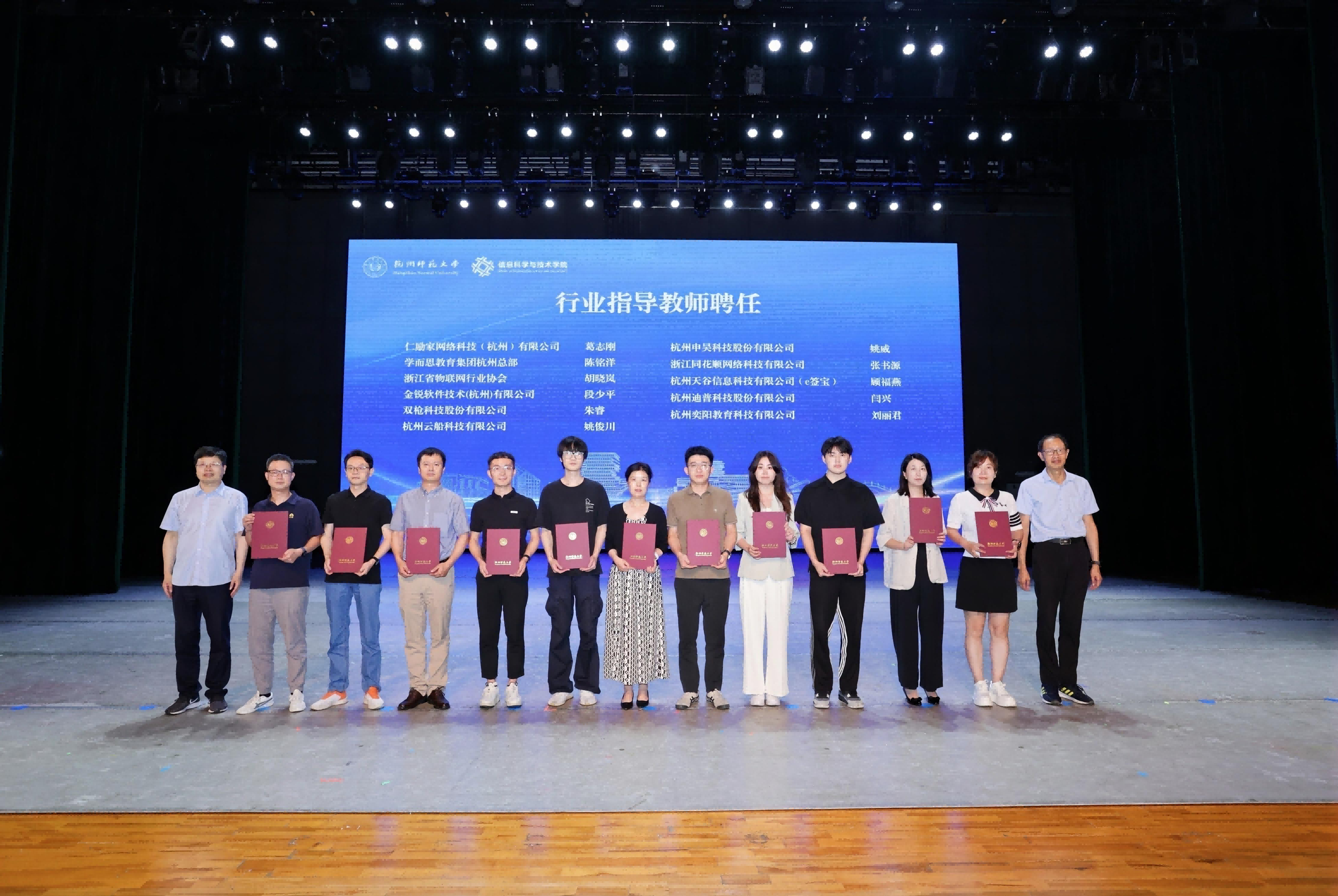活动现场聘任了近50位行业指导教师,校党委副书记应飚和胡华教授为受聘导师颁发了聘书。此次聘任的行业导师分别来自不同的企业和机构,涵盖了信息技术、人工智能、教育科技等多个领域。这些行业导师将为学生提供专业的指导和实践机会,帮助学生更好地适应行业需求,提升职业素养。