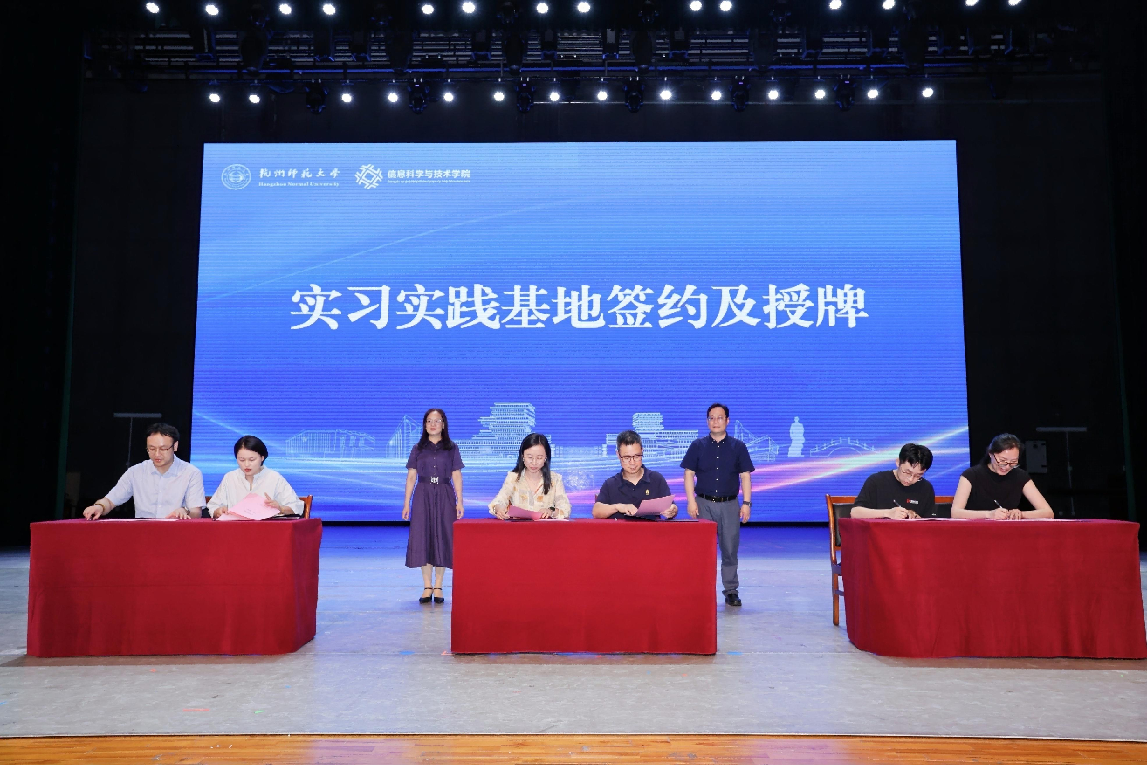 深化产教融合、加强校企合作是推进高等教育走出象牙塔,实现内涵提升与赋能区域经济社会高质量发展的必由之路,也是高校履行培养符合国家与地方战略需求人才培养核心使命的重要举措。本次活动中,学院与虹软科技股份有限公司、仁励家网络科技(杭州)有限公司、杭州鉴智机器人科技有限公司等企业代表签署了实习实践基地合作协议,学院领导给实习实践基地单位给予了授牌。