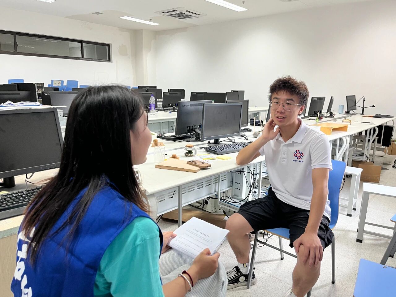 2025年7月16日上午,文轩探花 信息楼实验室的服务器嗡鸣声依旧。在这里,我们专访了刚毕业的校友——宁波市镇海中学新晋信息教师兼竞赛教练王图南。褪去青涩,带着竞赛淬炼的沉稳,他欣然分享了从实验室到中学竞赛讲台的历程,并给予了学弟学妹们诚挚建议。