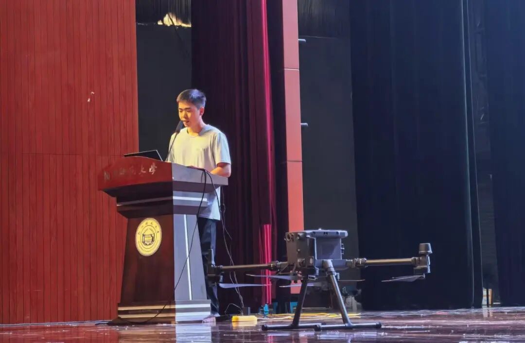 紧接着,王懿琦学长详细讲解了无人机在多领域的实战应用。在农业领域,无人机植保大显身手,它能依据农田实际情况精准喷药,作业效率达到人工的10倍以上,极大节省了人力成本。而且,无人机还可搭载专业传感器,实时采集土壤湿度、肥力等数据,为智慧农业的发展提供有力支撑,助力农业生产实现精准化、高效化。在应急救援场景,无人机更是发挥着不可替代的作用。面对山区、森林等复杂地形,它能快速穿越,第一时间投送救援物资、传递被困人员定位信息。更厉害的是,配备热成像仪的无人机,能在茫茫夜色或浓烟弥漫的环境中,精准排查生命迹象,为救援行动抢占宝贵先机。在城市治理方面,无人机化身“空中治理助手”,参与交通巡逻,可从空中视角及时发现交通拥堵点、违章行为;进行违建排查,能快速覆盖大片区域,精准识别违法建筑;开展环境监测,可对空气质量、水体状况等进行实时监测,为城市环境治理提供数据支持。
