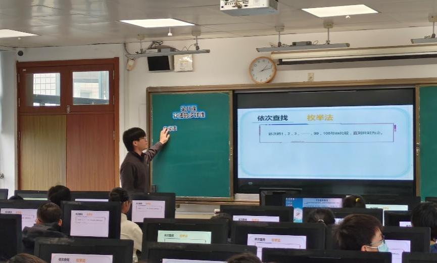 本次公开课由两位实习生分别执教。何亦晨同学执教六年级课程《算法的多样性》,引导学生在具体问题情境中体验不同算法的设计思路,培养计算思维;孙妙涵同学则面向三年级学生讲授《保护数字身份》,通过生动案例帮助学生树立网络安全意识,提升学生信息社会责任。两节课均运用人工智能技术制作网页辅助教学,体现了信息技术课程的核心素养要求,展现了师范生扎实的专业基础与良好的教学风貌。