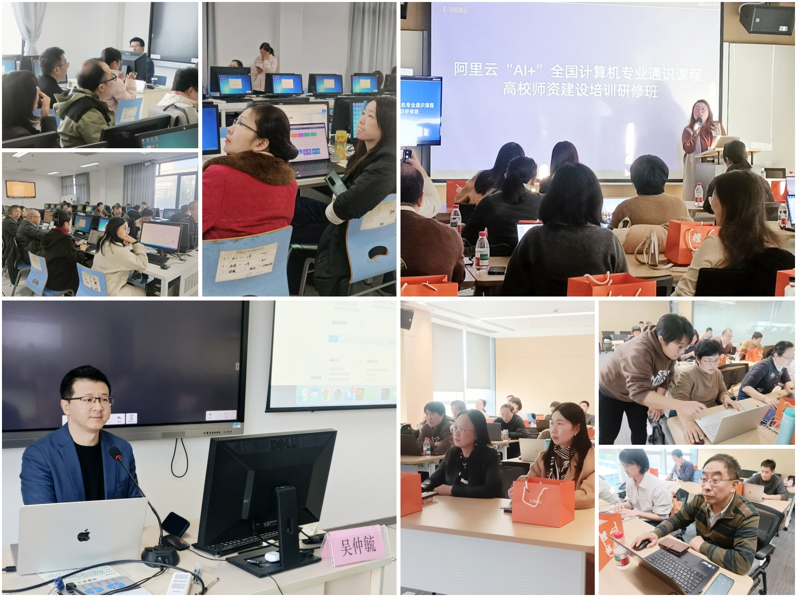 本次研修班,除理论学习、经验分享、专题研讨外,还安排了阿里云云平台与杭州睿数科技(海豚实验室)的实践操作指引课程。《阿里云高校AI人才培养计划》《阿里云、智慧云赋能千行百业》《从零开始的智能应用创新之旅》《高校人工智能专业与通识课课程一体化平台建设》等课程带领学员一步步开展人工智能通识课程与智能体等实践操作,助学员学习云平台部署、智能体创建、典型案例制作等。