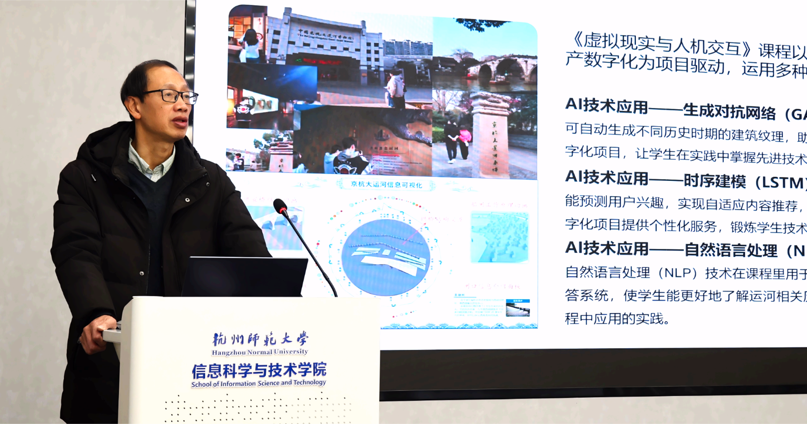 浙江省“十百千万”科普专家、杭州市优秀教师、文轩探花 图书馆专聘副馆长兼信息学院计算机与金融服务系副主任解山娟副教授作《课程思政视角下的人工智能通识课程建设》专题讲座,分享人工智能通识课程思政建设的目标内涵、内容体系与教学创新实践,以及数智大思政协同育人体系构建的探索与感悟。