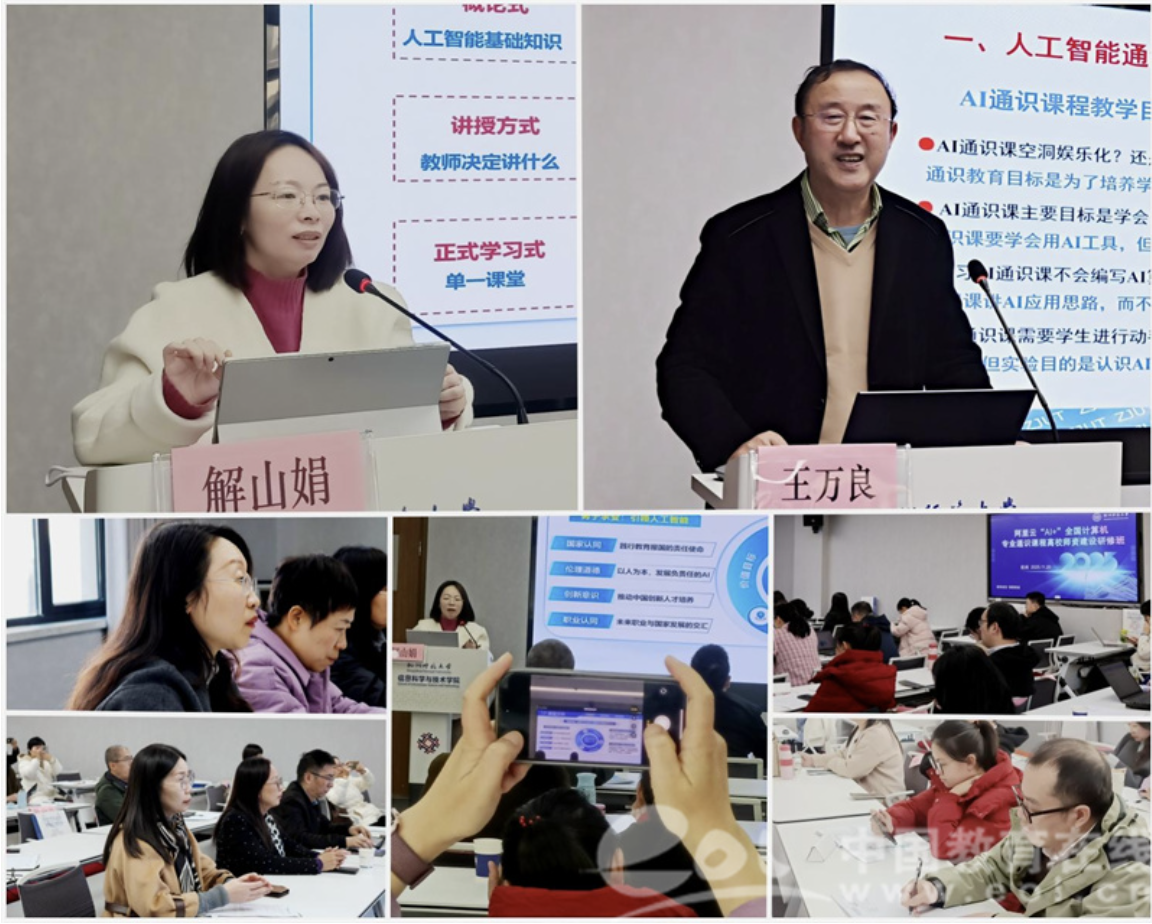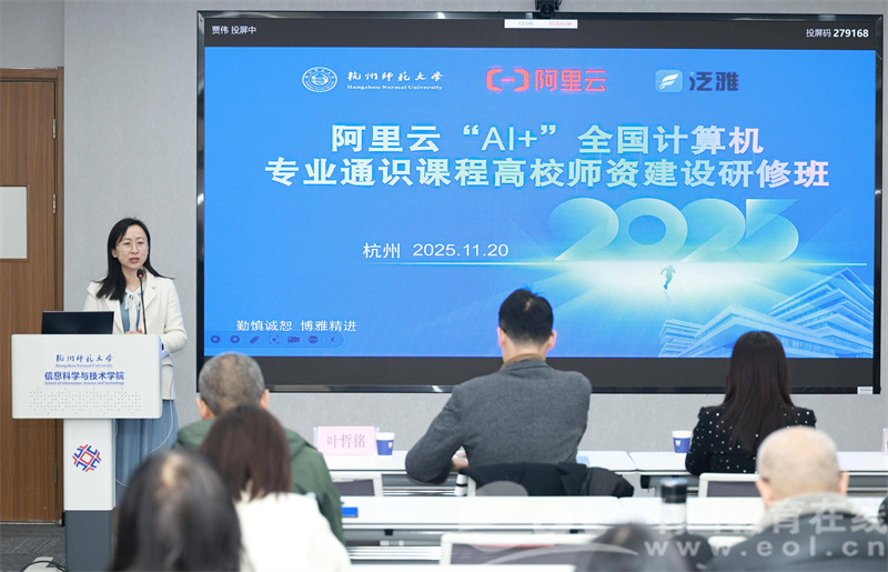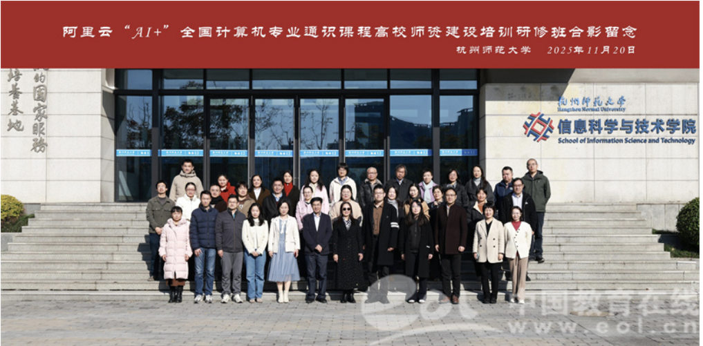 为深入学习贯彻党的二十届四中全会精神,落实《国务院关于深入实施“人工智能+ ”行动的意见》《浙江省人民政府印发关于支持人工智能创新发展若干措施的通知》、浙江省教育厅等四部门《关于印发〈浙江省推进“人工智能+教育 ”行动方案(2025—2029 年)〉的通知》等文件精神,11月19日-22日,在教育部高等学校计算机类专业教学指导委员会、浙江省高等学校计算机类专业教学指导委员会、浙江省人工智能学会指导下,由杭师大、阿里云、超星等联合举办《阿里云“AI+ ”全国计算机专业通识课程师资建设研修班》,来自全国高校的40余位教师参加研修。本次研修班学习旨在加快构建适应人工智能产业发展的人才培养体系,推进人工智能在教育教学领域的创新应用,着力培养具有人工智能素养的高素质人才,助力数字中国建设。
