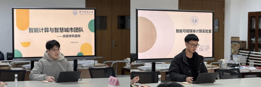 “智能计算与智慧城市团队”代表卢磊拉开汇报序幕。他系统梳理了团队本年度的建设成果,围绕四大核心维度展开详细阐述:党政思想建设中,团队以常态化主题学习与专题研讨筑牢理想信念根基;学风建设上,创新推行“导师+师兄”双轨传帮带机制,营造出求真务实、勤学善思的浓厚氛围;学术成果展示环节,团队不仅亮出硬核科研实力,更特别邀请毕业生分享研究生生涯感悟,以“传经验、启思路”的方式实现科研精神的承上启下,充分展现了团队多维度发展的蓬勃活力。