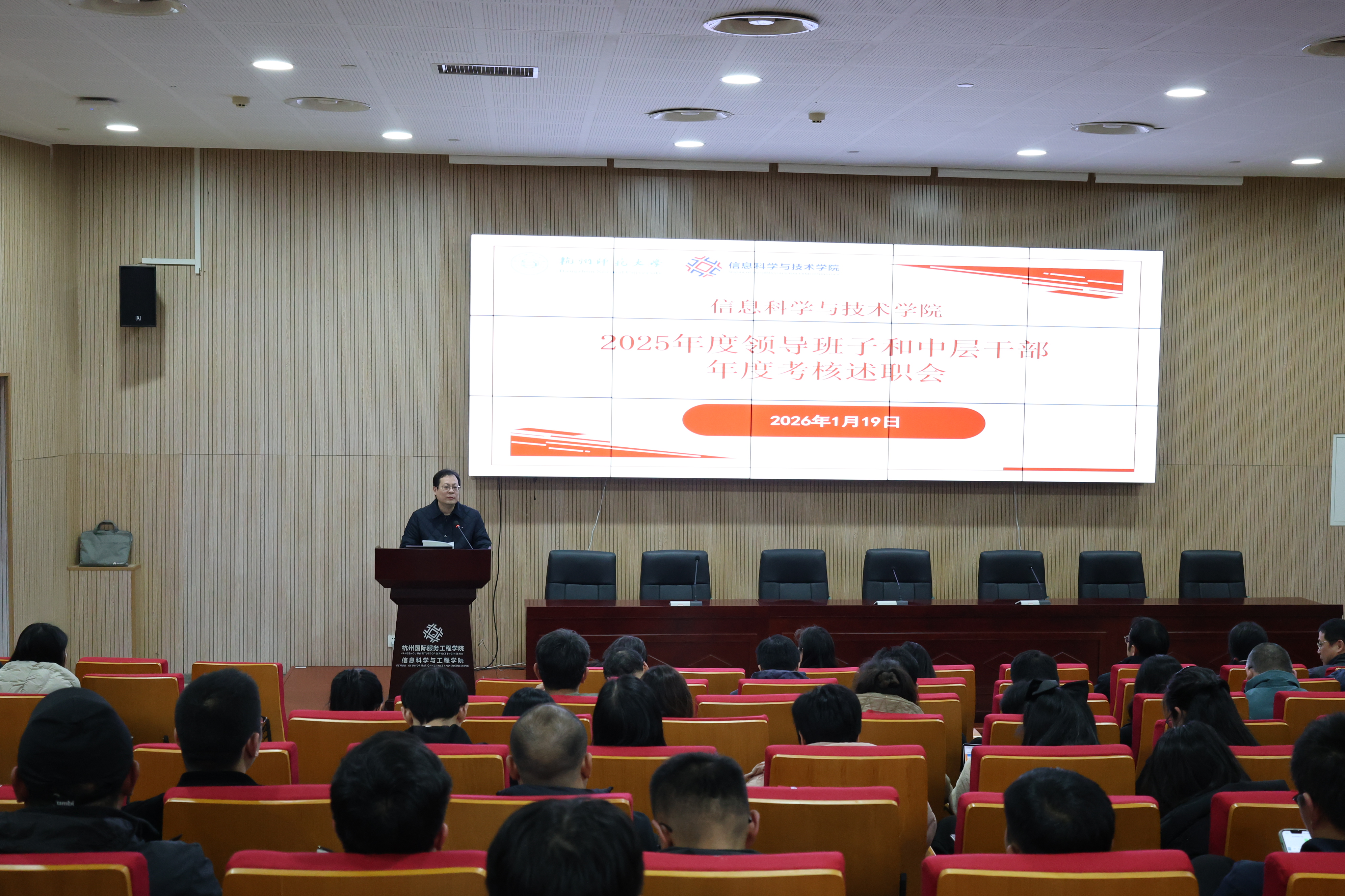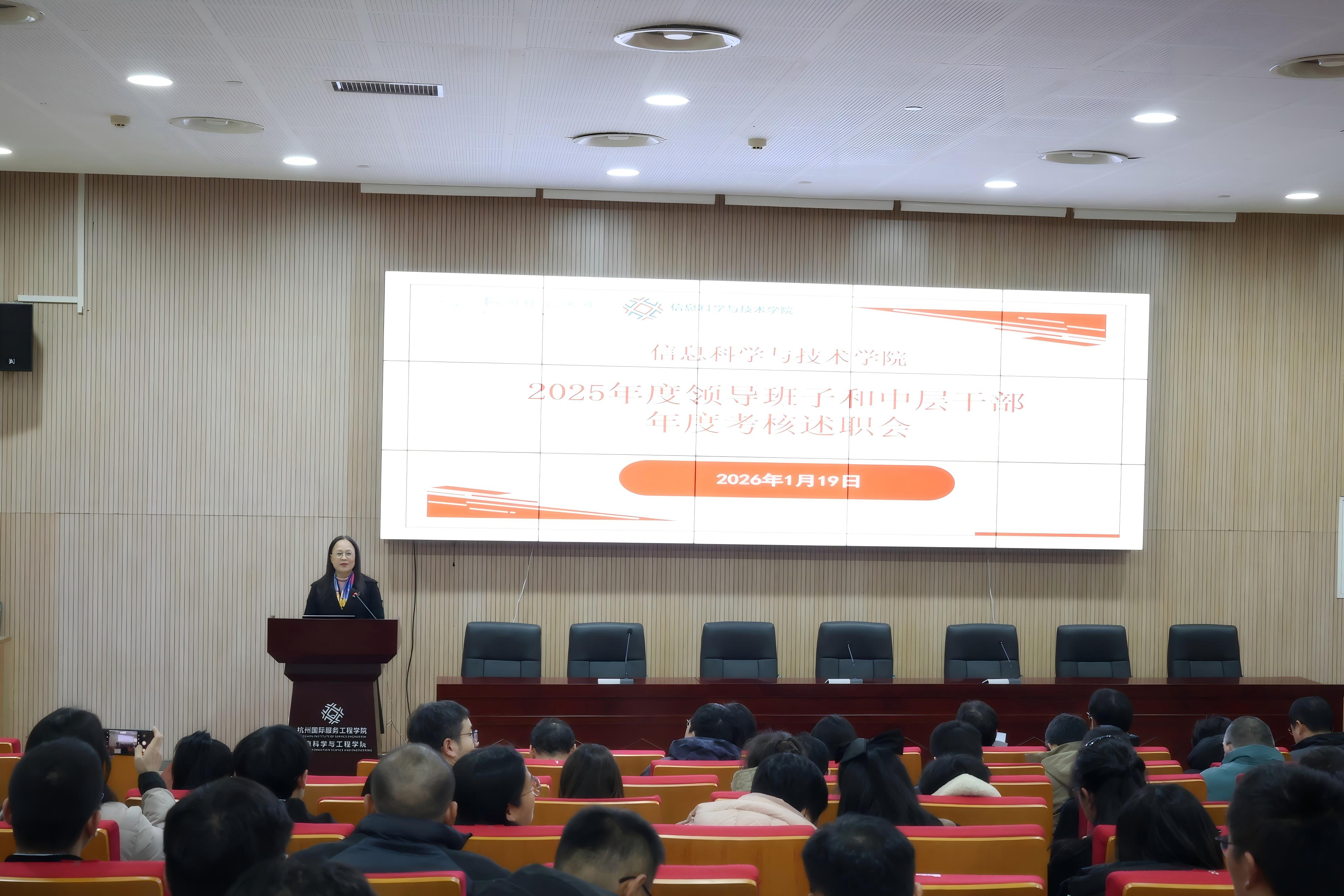 党委书记周春儿代表学院党政班子进行述职。2025年作为“十四五”规划收官之年,学院始终锚定高质量发展目标,在党建引领、学科建设、科学研究、人才培养、队伍建设、服务社会等领域多点突破、全面发力,各项工作取得显著成效:一是党建领航强根基,创优提质促发展;二是学科建设上台阶,内涵基础趋扎实;三是科研服务齐发力,驱动创新促跃升;四是五育并举育新人,人才培养谱新篇;五是AI+行动显担当,数智赋能展作为。2026年,学院将以新质生产力推动高质量发展为核心,紧扣申博与“双一流”建设目标,以更坚定的决心、更务实的举措,为学校争创国家“双一流”、实现“十五五”规划良好开局贡献坚实力量!